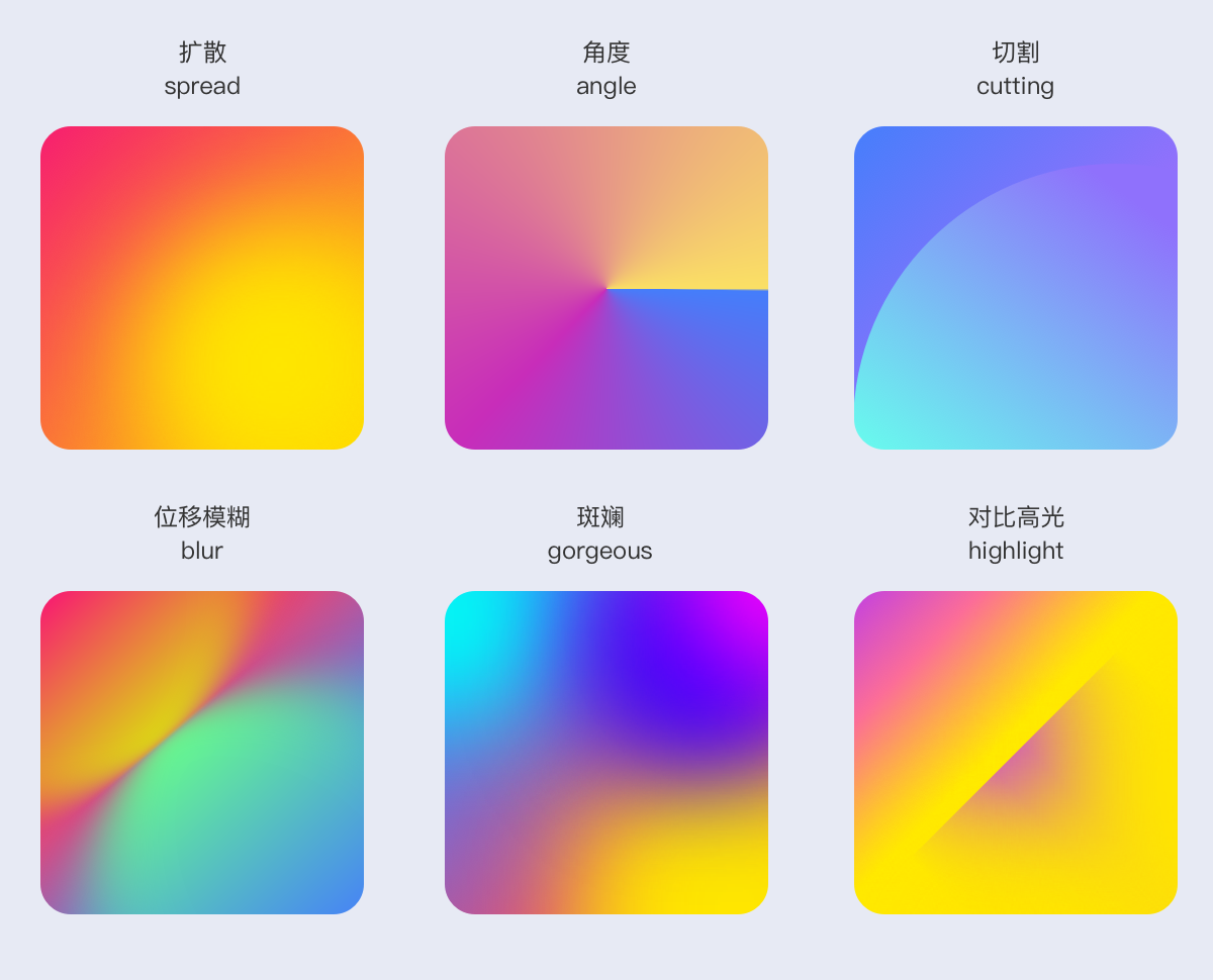 通过不同的叠加方式,可以迸发出更加不同的渐变效果。(以下的内容只作为案例展示,不限制有更多的表现形式)