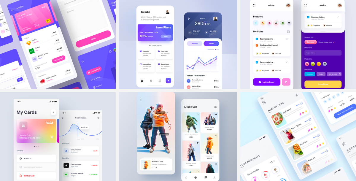 如以下的一些APP的设计,也是使用主的品牌色再结合一些辅助色进行设计,来达到年轻化和颜色丰富感。